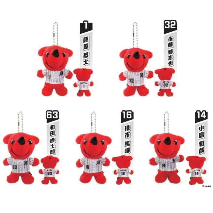 JAN: 1 藤原恭大 4536947030382 32 佐藤都志也 4536947030405 63 和田康士朗 4536947030412 16 種市篤暉 4536947030429 14 小島和哉 4536947030436 小売価格:各2,500円(税込) 千葉県許諾 第B2-526号 本体サイズ:約W30mm×約H47mm